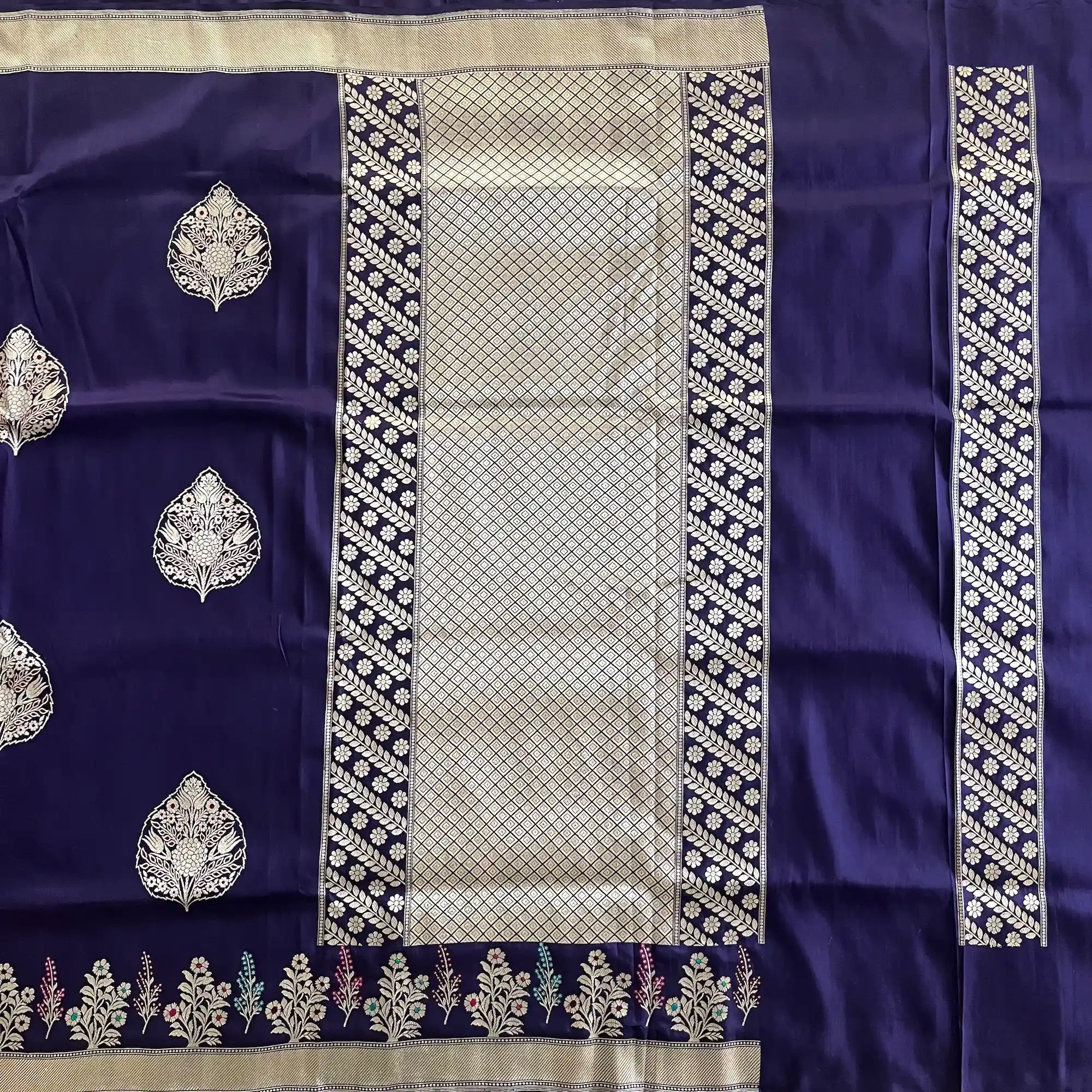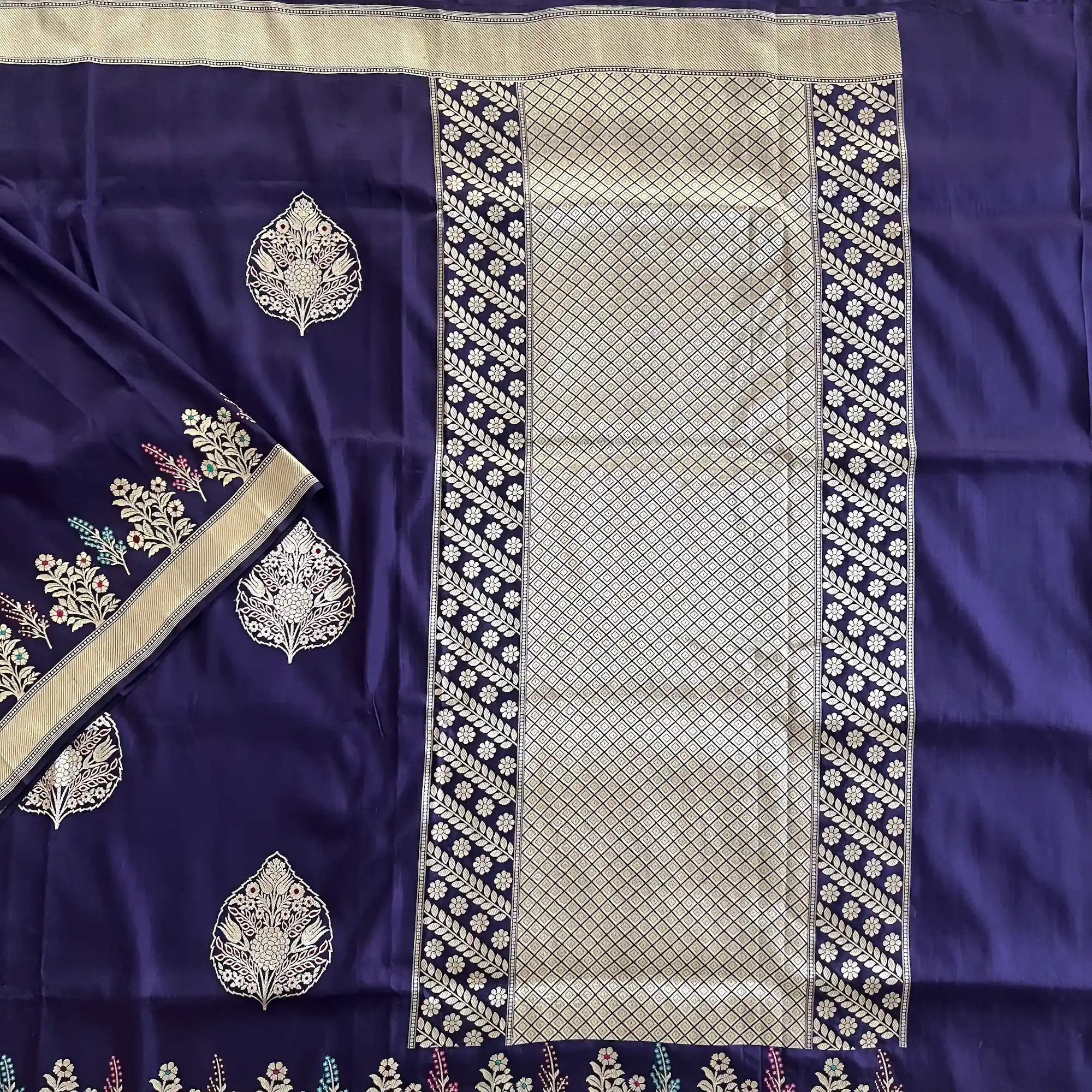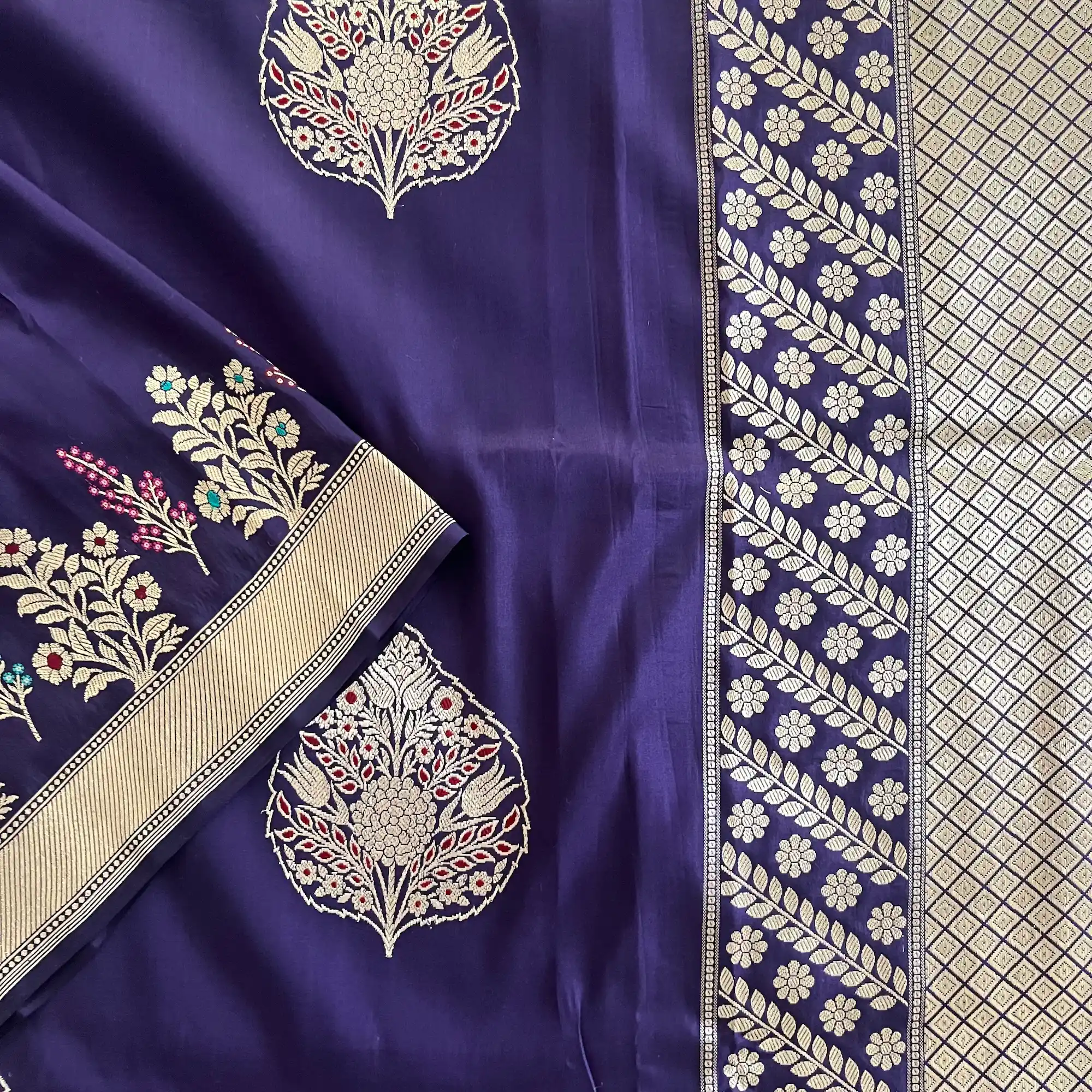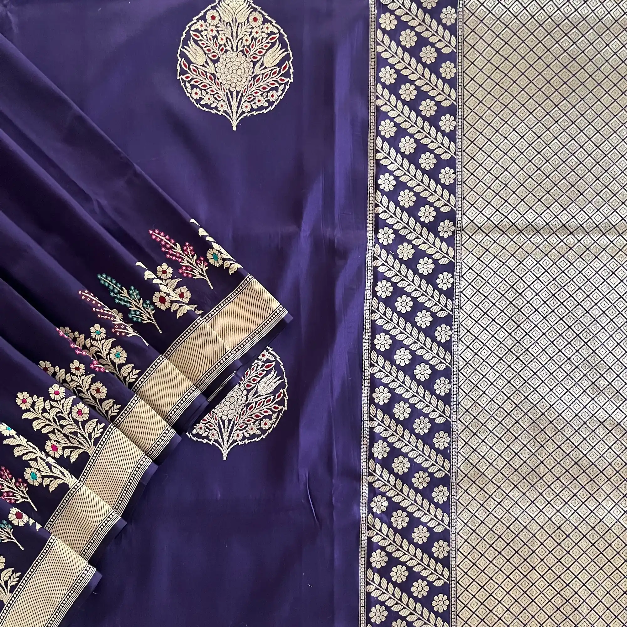Banarasi Pure Katan Silk, Royal Purple Kadua Meenakari Boota Handloom Saree