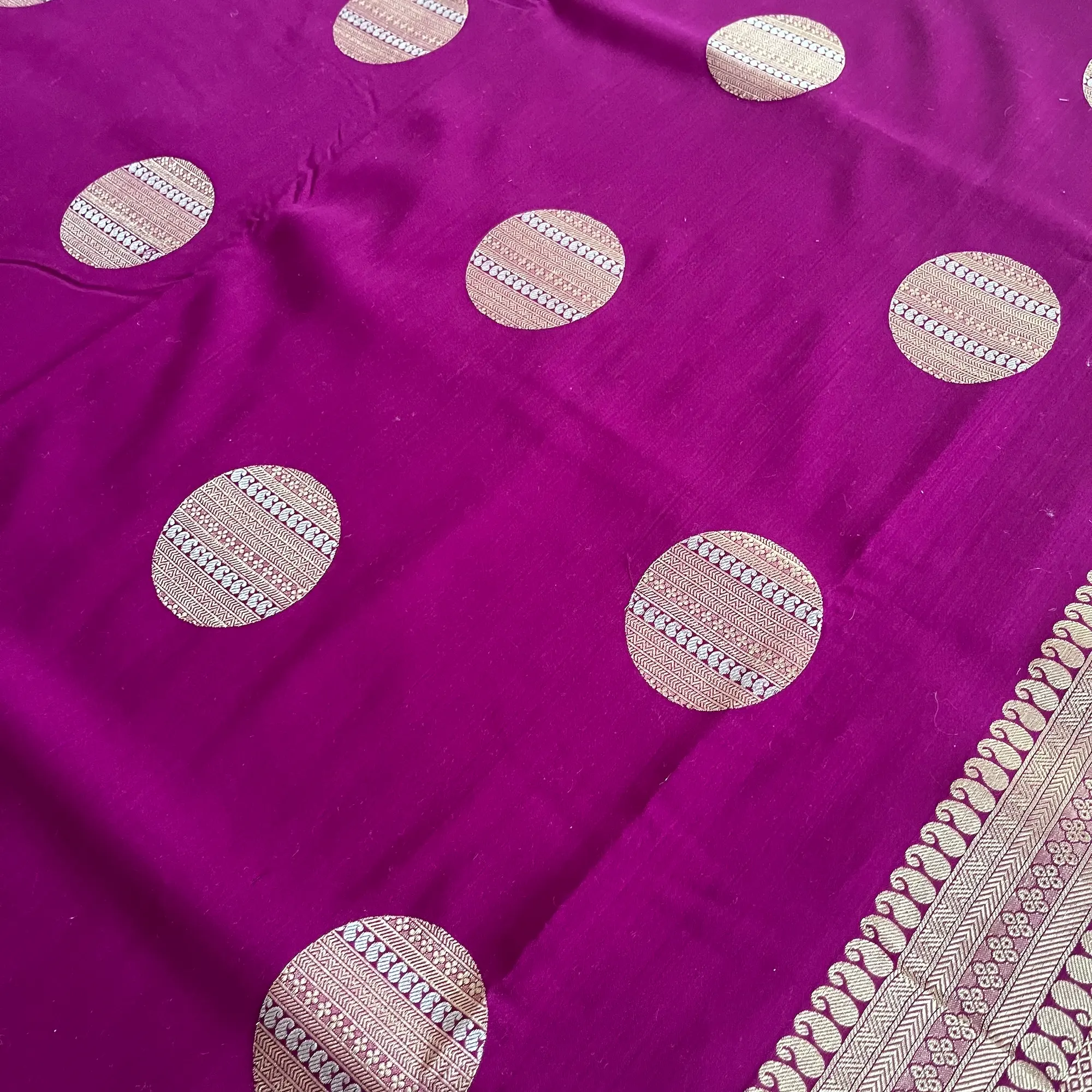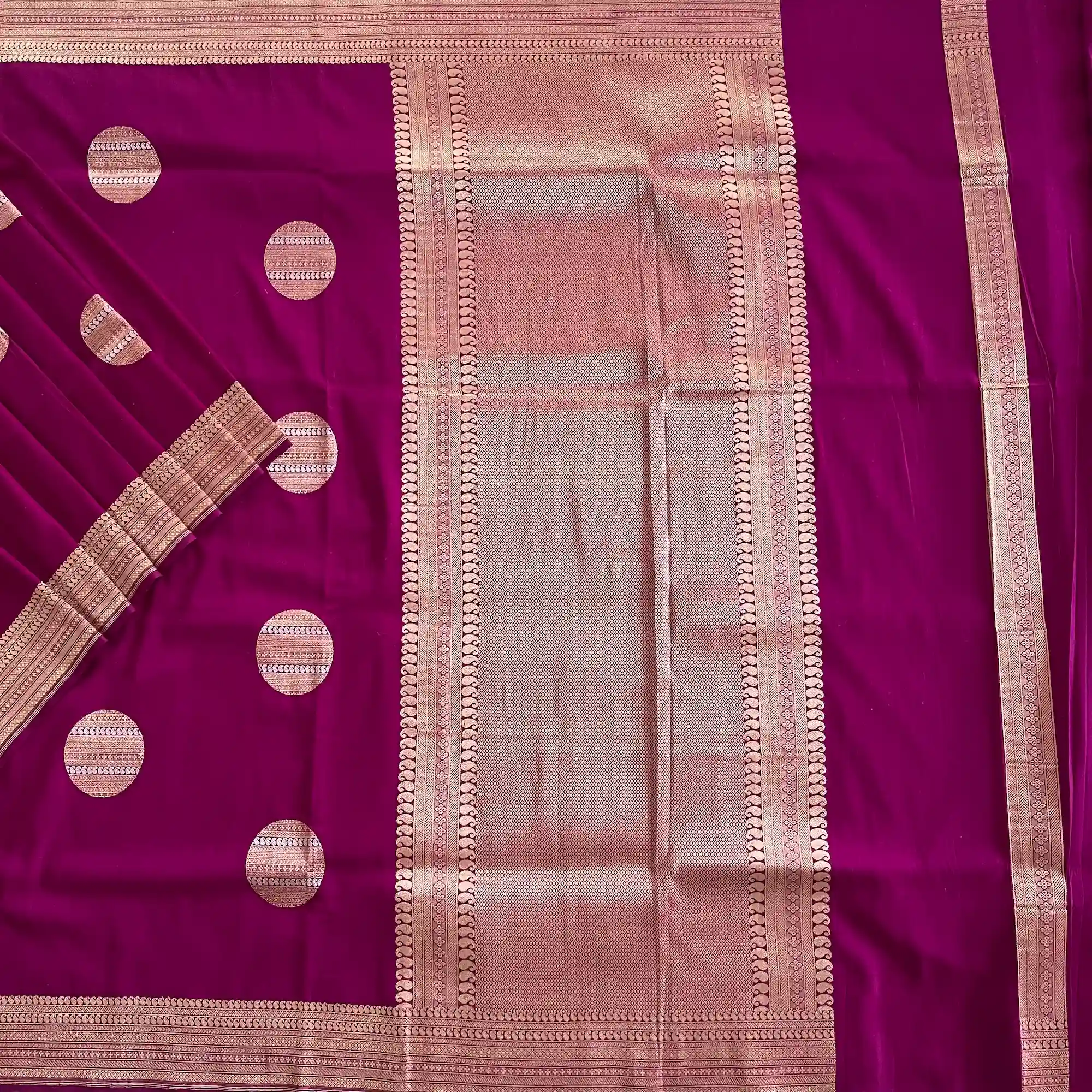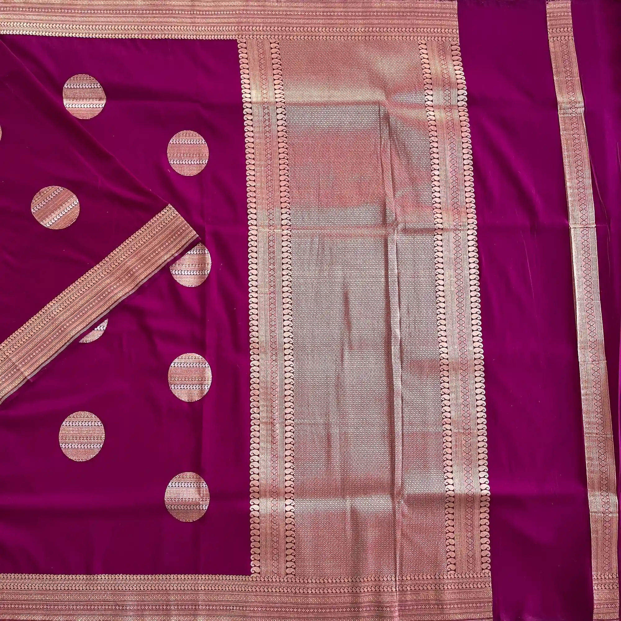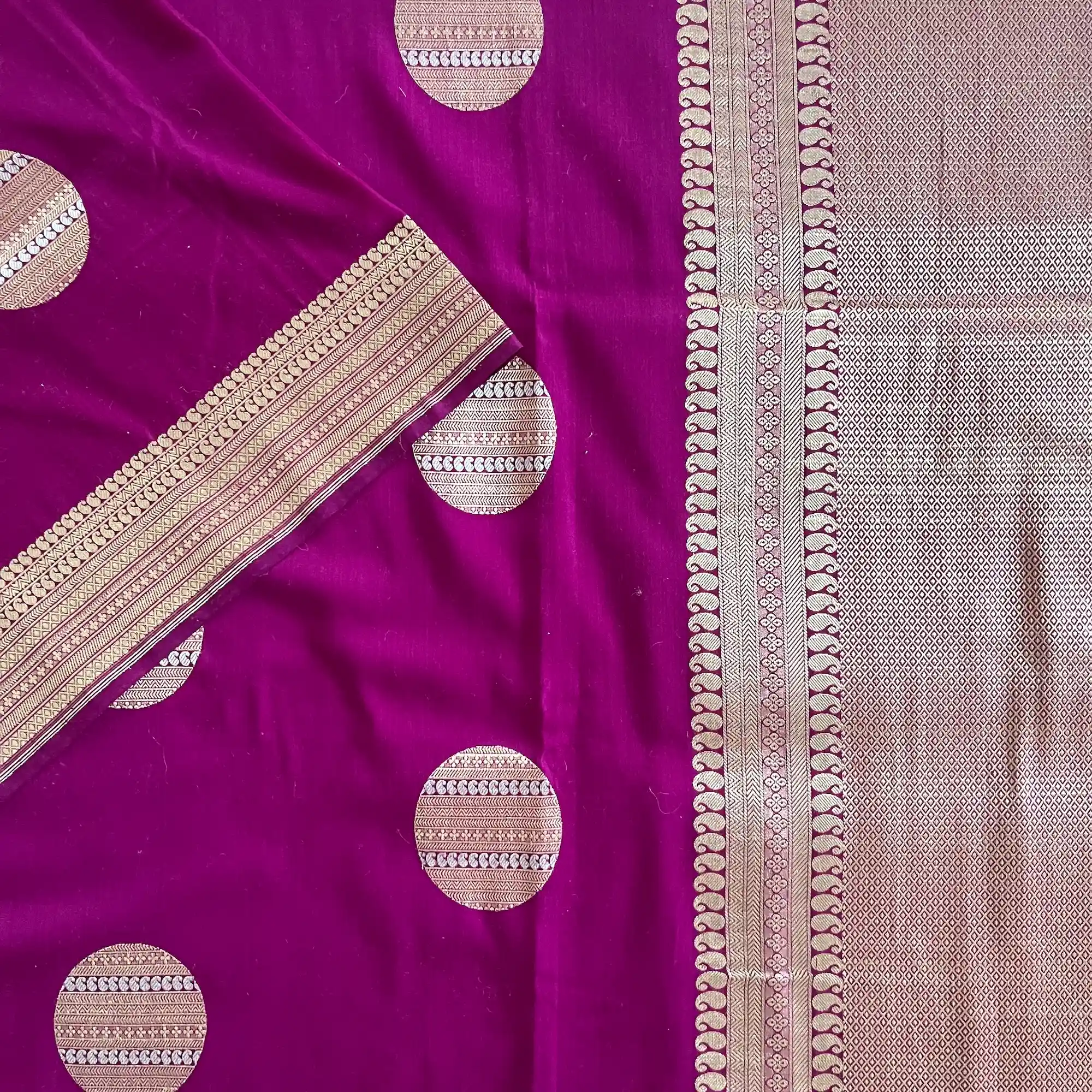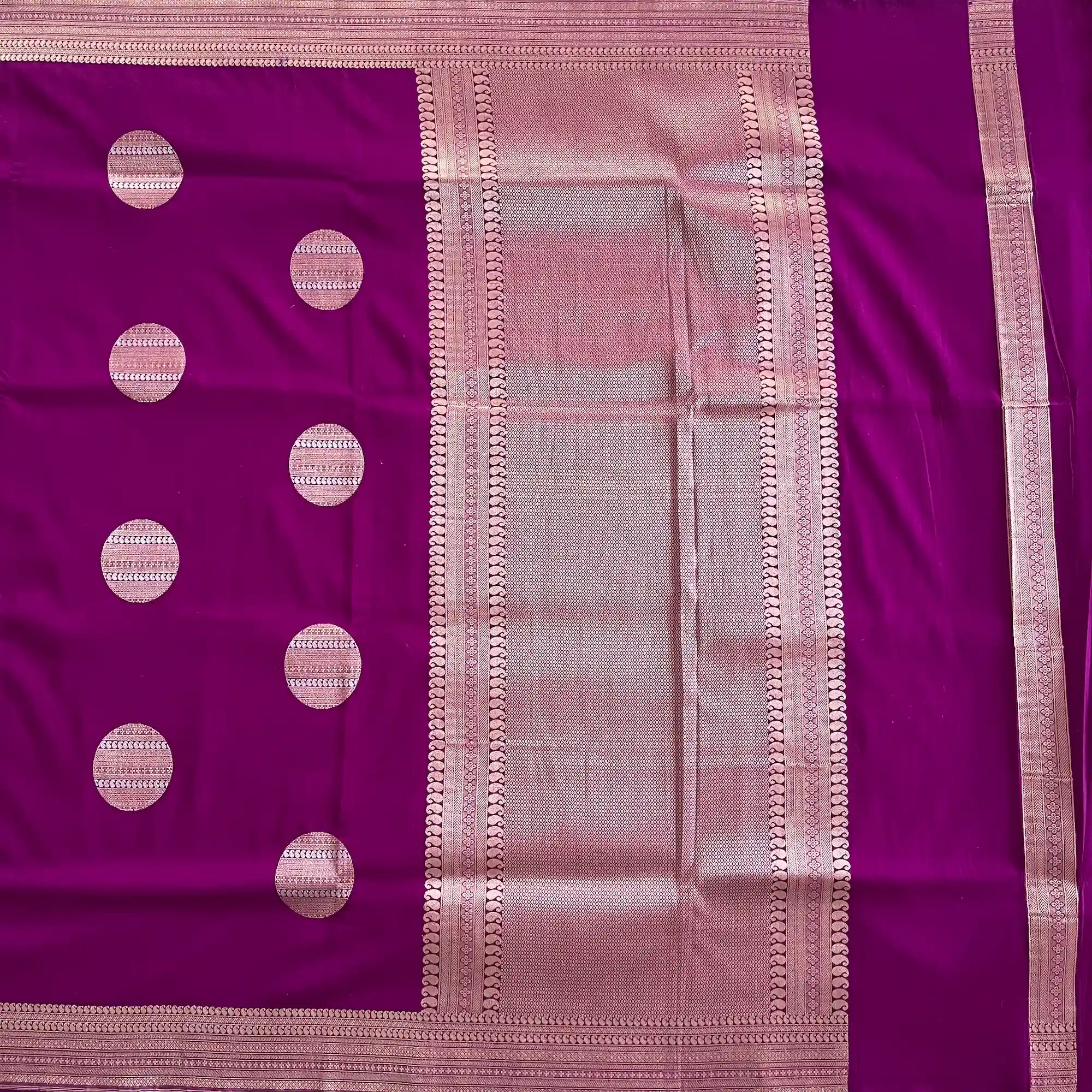 Banarasi Pure Katan Silk, Magenta Purple Kadua Meenakari Boota Handloom Saree